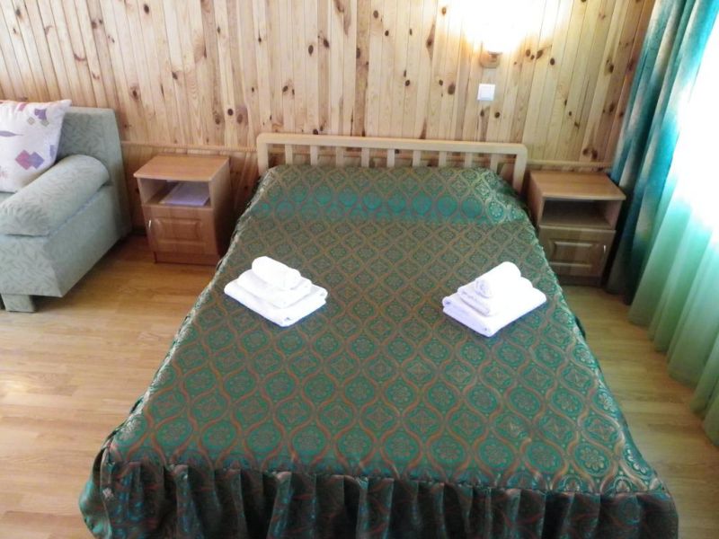 ПОЛУЛЮКС 18 кв.м, двуспальная и две односпальные кровати, вид: во двор. В номере: холодильник, телевизор (кабельное телевидение более 60 каналов), деревянная кровать, диван или 2 односпальные кровати, столик, стулья, тумбочки, шифоньер, кондиционер