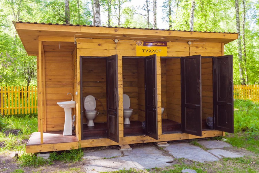 благоустроенные туалеты и душевые (для проживающих в неблагоустроенных номерах, работают круглосуточно, пользование душевыми бесплатно)