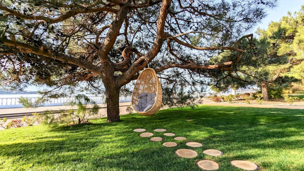 Вилла «Калипсо» — 316 кв. м, роскошная вилла, состоящая из 5 спален, просторной гостиной, кухни, с 4 двуспальными кроватями и односпальной кроватью, мягкой мебелью, санузлом на каждом этаже, террасой, вид на море и во двор, макс. 9 чел.
