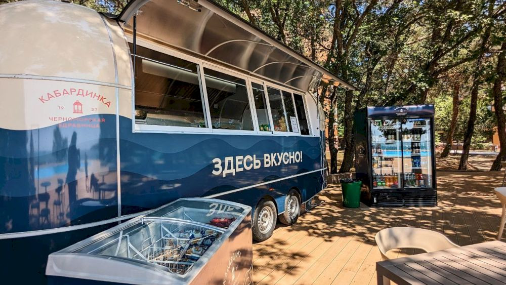 фудтраки с зоной отдыха вблизи бассейна и набережной: прохладительные напитки и сытные закуски