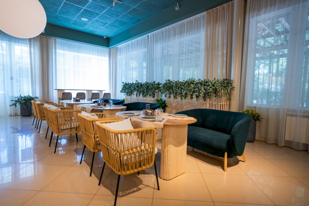 Сьют — 62 кв. м, двухкомнатный номер с кроватью king size, раскладным диваном, отдельной гардеробной, санузлом с тропическим душем, ванной, номера данной категории расположены на 4 этаже, обновлены в 2024 г., вид на парк/частичный вид на море, макс. 4 чел.