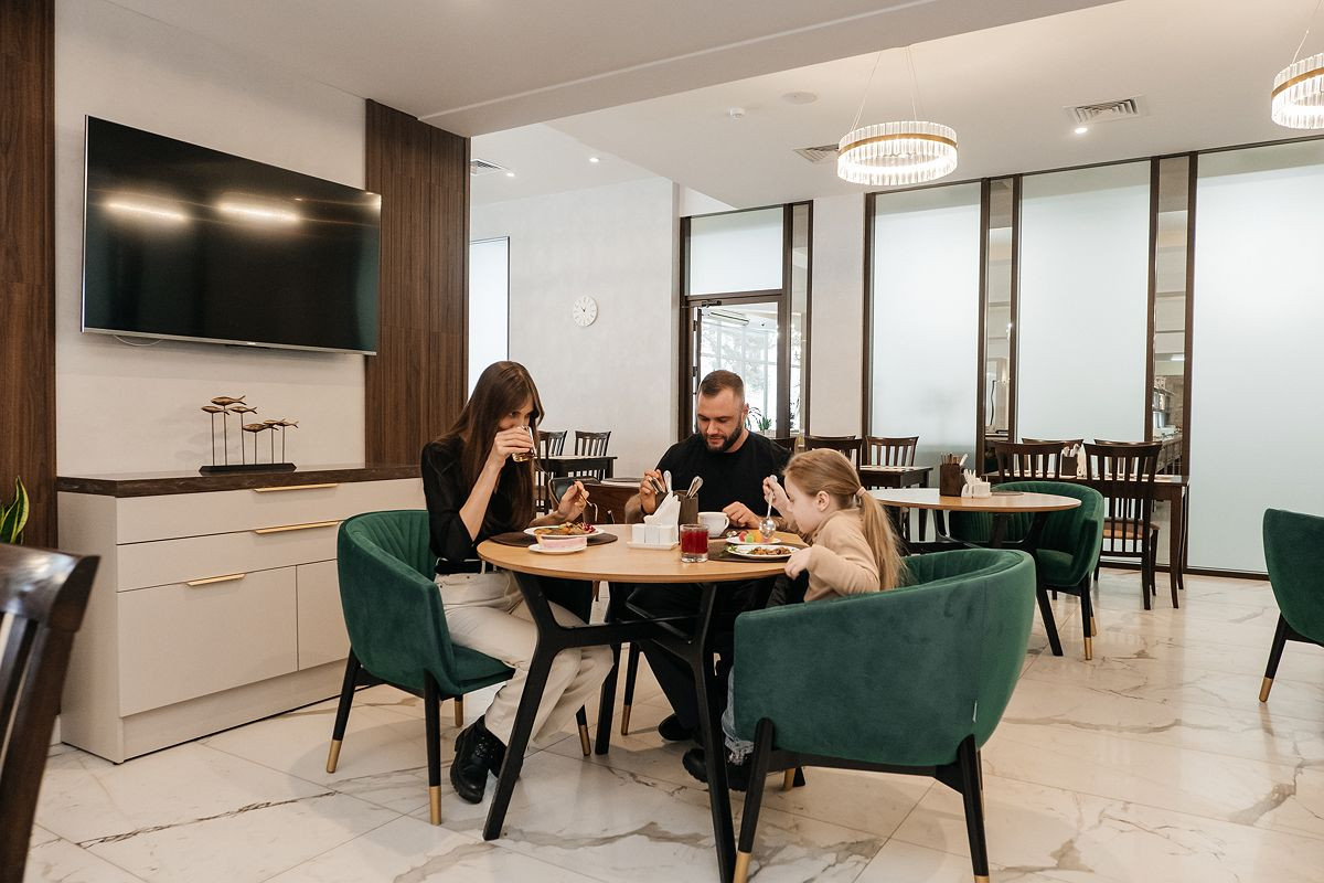 Семейный стандарт — 15 кв. м, однокомнатный номер, две кровати-трансформера, которые объединены в двуспальную (160-180 см). Количество гостей: 2 человека на основных местах